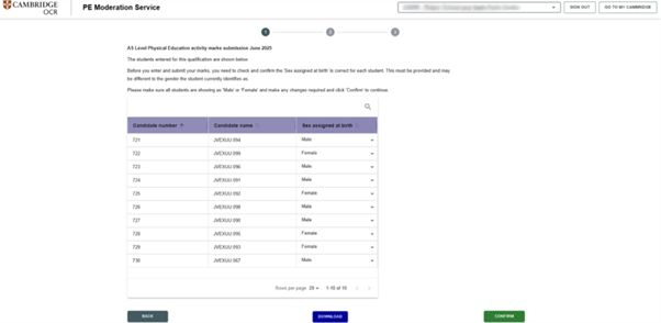 Before you enter and submit your marks, you need to check and confirm the 'Sex assigned at birth' is correct for each student. This must be provided and may be different to the gender the student currently identifies as.